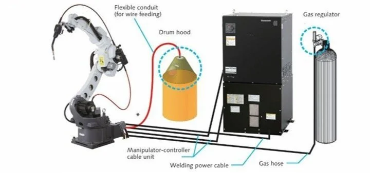 The following list of system components in a dedicated robot welding system are manufactured by a single supplier (known as Single Source), with seamless integration between all components.